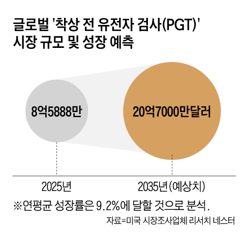 The demand for preimplantation genetic testing is increasing quickly. As per Research Nester, a U.S.-based market analysis company, the worldwide market is projected to grow from $858.88 million (around 1.26 trillion South Korean won) this year to $2.07 billion by 2035. Dr. Xu stated, "With roughly 2.5 million IVF treatments carried out globally each year, this number is anticipated to rise to 5 million by 2030. As a result, the genetic testing market could reach $10 billion per year."